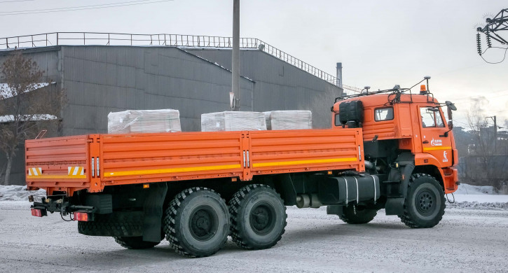 Грузовая модель КамАЗ-43118 отрабатывает технологический маршрут перевозки огнеупоров со складов управления подготовки производств на строительную площадку коксовой батареи № 12.