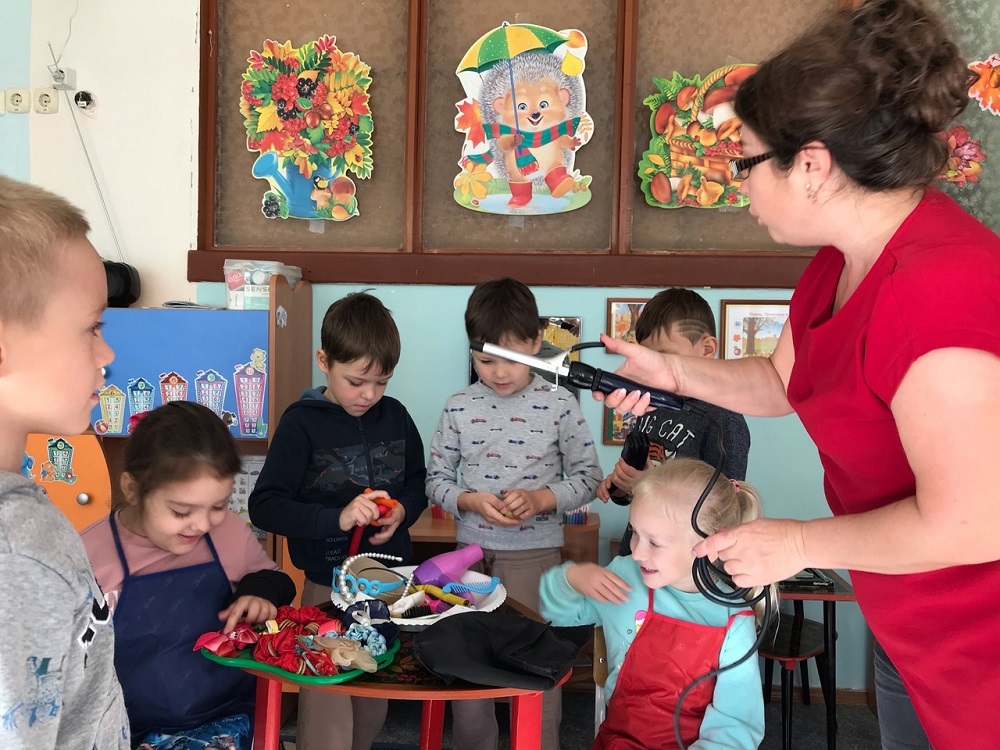 С целью трудового воспитания и решения задач ранней профориентации педагоги группы «Колокольчик» МБДОУ ДС №53 организовали в для своих дошколят мастер-класс по созданию причёсок для девочек. Ребята попробовали себя в роли стилистов – парикмахеров: с удовольствием расчесывали пряди волос, придумывая для наших девочек яркие образы принцесс. В познавательной беседе закрепили знания о труде парикмахера, отгадывали тематические загадки. Задумались над тем, что парикмахер своего рода доктор для здоровья волос, потому что только он может дать ценные советы по уходу за волосами, стрижкой и прической.