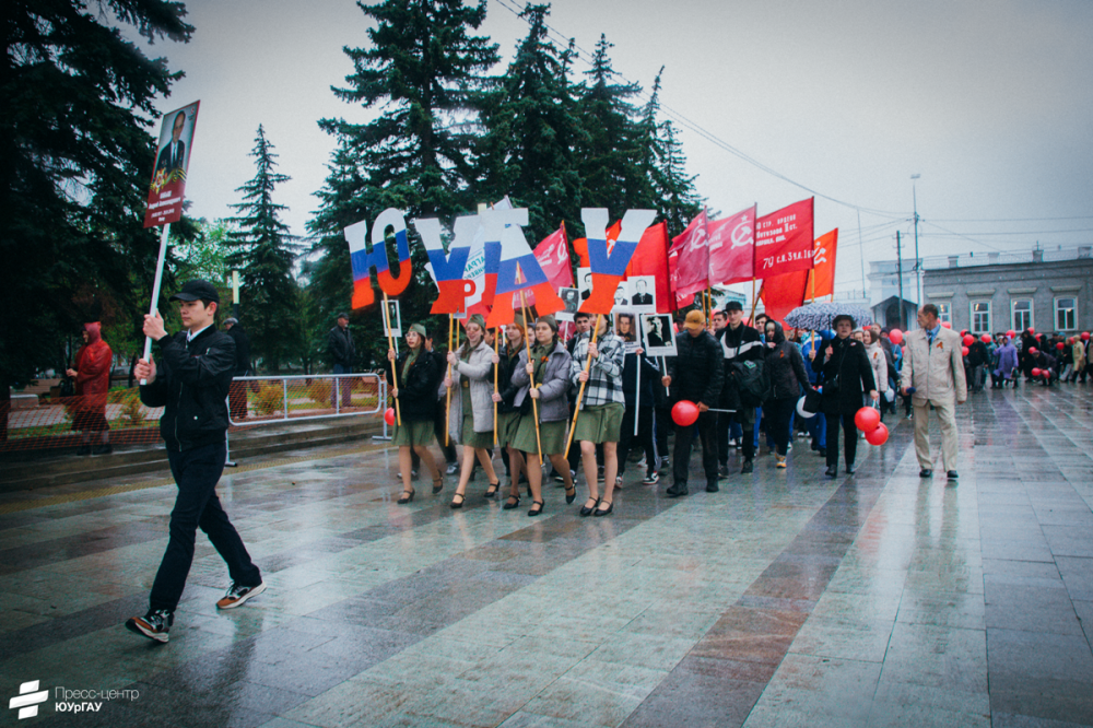 Празднование началось с Церемонии возложения цветов и венков к братским могилам советских воинов, умерших от ран в госпиталях города в годы войны. Провели её студенты Института ветеринарной медицины ЮУрГАУ Валерия Третьякова и Кирилл Твердов. Ректор, руководители, преподаватели и студенты возложили цветы. Напомним, что несколькими днями ранее ребята и преподаватели привели в порядок территорию вокруг захоронений.