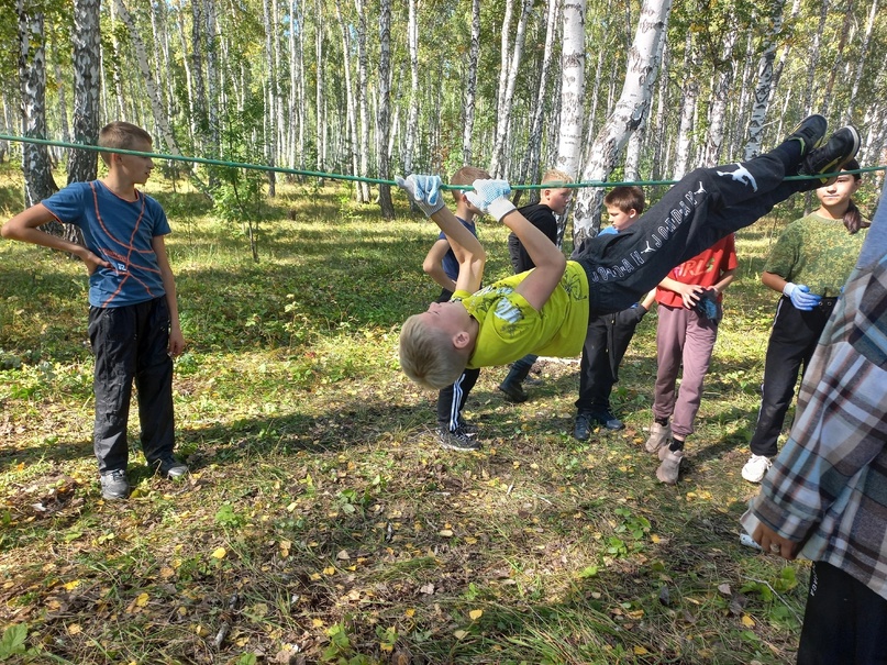 Команды 5-9 классов провели день в лесу, повторяя и закрепляя туристические знания и умения: как уложить рюкзак, развести костёр, завязать туристические узлы, как переправиться через опасный участок по веревке, используя "бабочку", листы фанеры, по бревну, как определить азимут, прочитать топографическую карту и, наконец, улечься спать в спальном мешке.