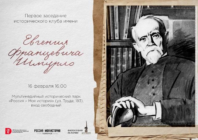 С идеей организовать исторической клуб имени Евгения Шмурло выступили научное общество «Философия истории» и дирекция фестивальных и культурно-массовых мероприятий Челябинской области в лице мультимедийного парка «Россия — моя история».