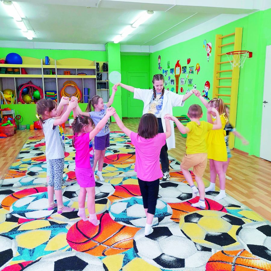 Зарядка, завтрак, занятия — всё по расписанию. Ребята занимались своими делами и одновременно поглядывали на меня. Спустя какое-то время мы немного привыкли друг к другу и начали играть вместе. Сколько же энергии у этих непосед! Но я не отстаю, поддерживаю каждую игру.