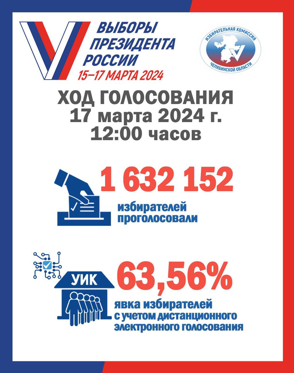 К полудню на выборах президента успели проголосовать 63,6% южноуральцев