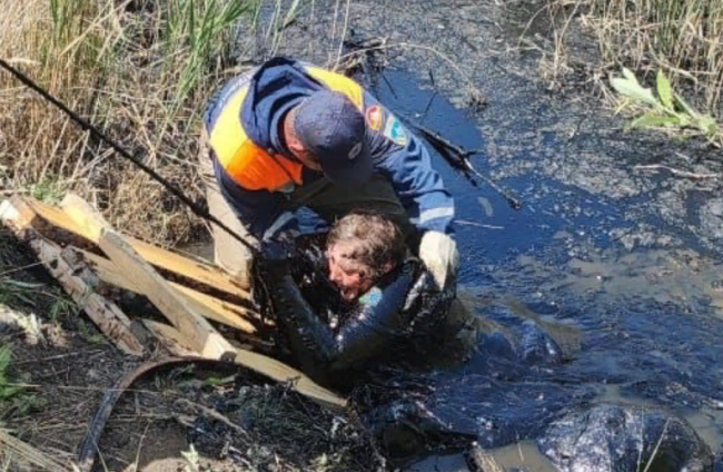Хозяйка бросилась на помощь животному, но сама провалилась в густую, липкую жижу.