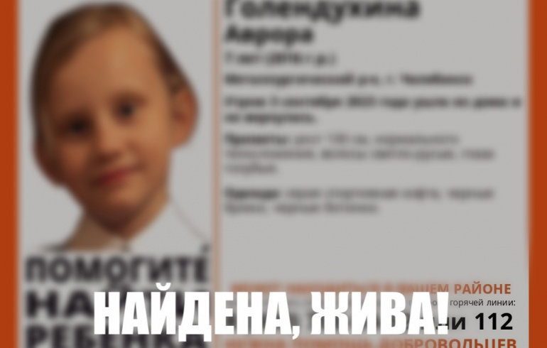 Пропавшую в Челябинске семилетнюю девочку нашли живой. Об этом сообщили волонтёры поискового отряда «ЛизаАлерт».