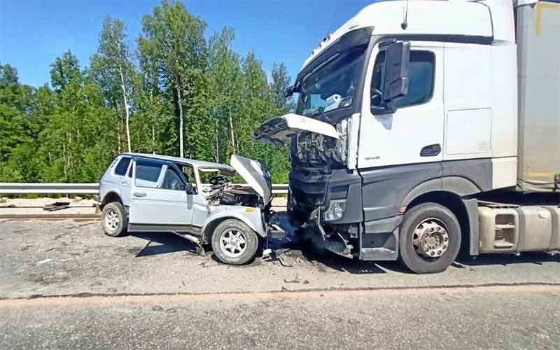В областной ГИБДД сообщили, что водитель «Нивы» на запрещённом для обгона участке выехал на полосу встречного движения и там столкнулся с грузовым автомобилем Mercedes-Benz.