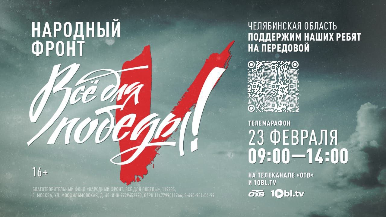 В День защитника Отечества в Челябинской области стартует масштабный праздничный марафон. Региональное отделение Народного фронта совместно с медиахолдингом «Первый областной» запускает сбор средств южноуральским военнослужащим «Все для победы!».