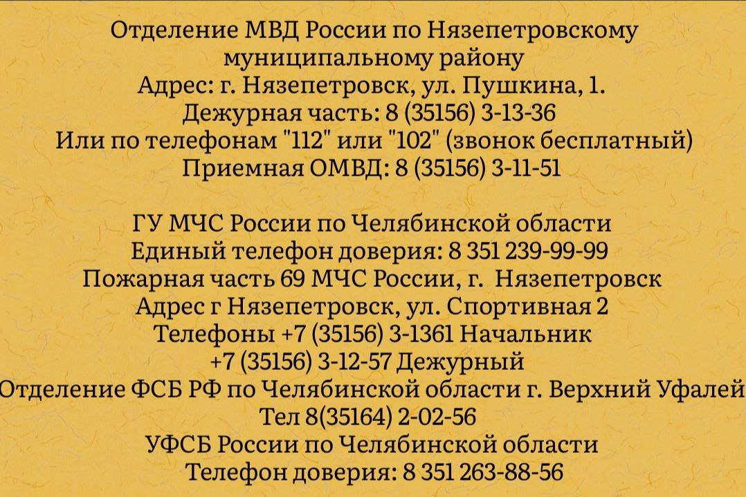 Администрация Нязепетровского муниципального района напоминает о контактных телефонах и телефонах доверия, по которым граждане могут обратиться в случае необходимости