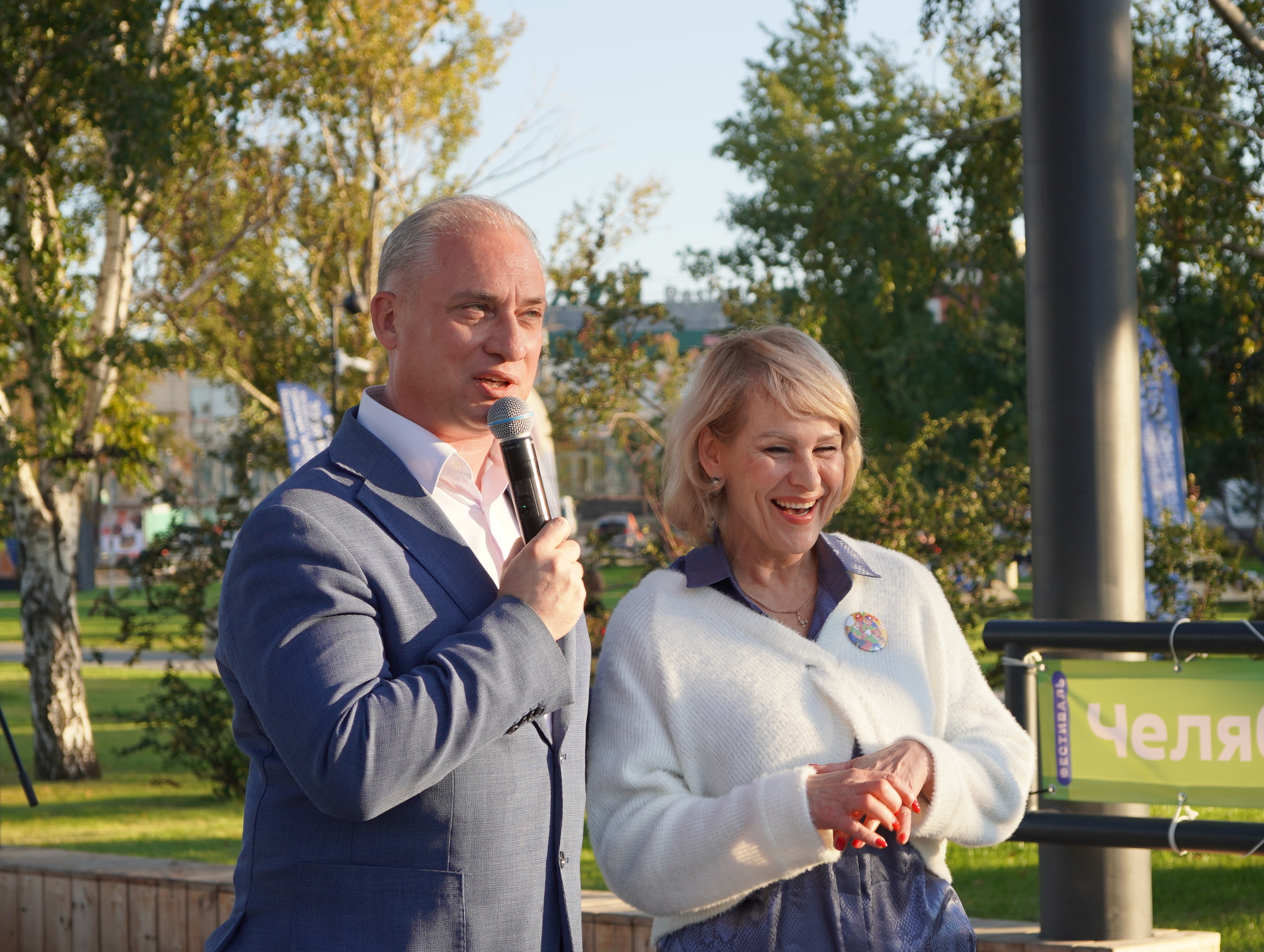 Председатель Челябинской городской Думы Андрей Шмидт вместе с председателем Комитета социальной политики Ларисой Мошковой поздравили горожан на фестивале «Челябинская область – большая семья».