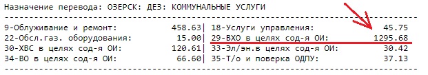 УК платежной квитанции в перечне "Виды услуг" включает: "Вхо в целях содерж.Ои"