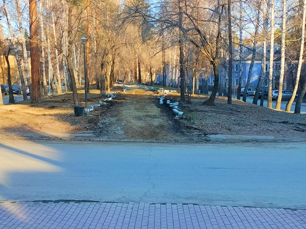 Далее, от Музрукова до набережной у "Айвенго", тоже выполнен демонтаж асфальта. Так что теперь по центру до озера не пройти. Только по боковым аллеям.