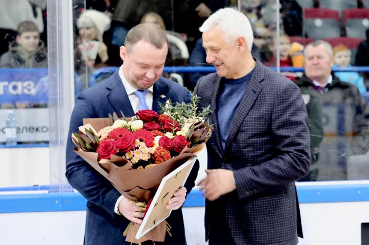 Мэр города Сергей Бердников поблагодарил спортсмена за его вклад в развитие хоккея в Магнитогорске.