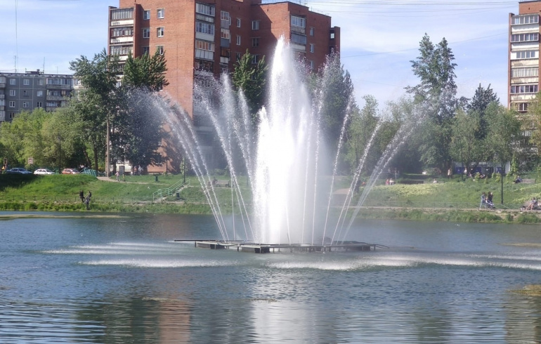 С наступлением жарких дней на пруду Девичьи слёзы в Челябинске запустили фонтан.