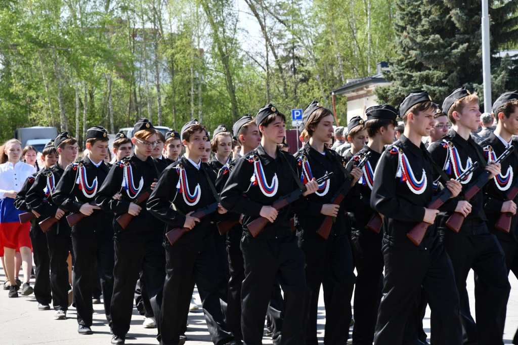 В колоннах прошли бойцы Озёрского соединения войск Росгвардии, а также учащиеся школ и колледжей.
