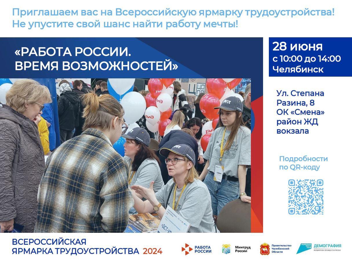 В преддверии дня молодёжи – 28 июня в Челябинской области пройдет второй этап Всероссийской ярмарки трудоустройства «Работа России.