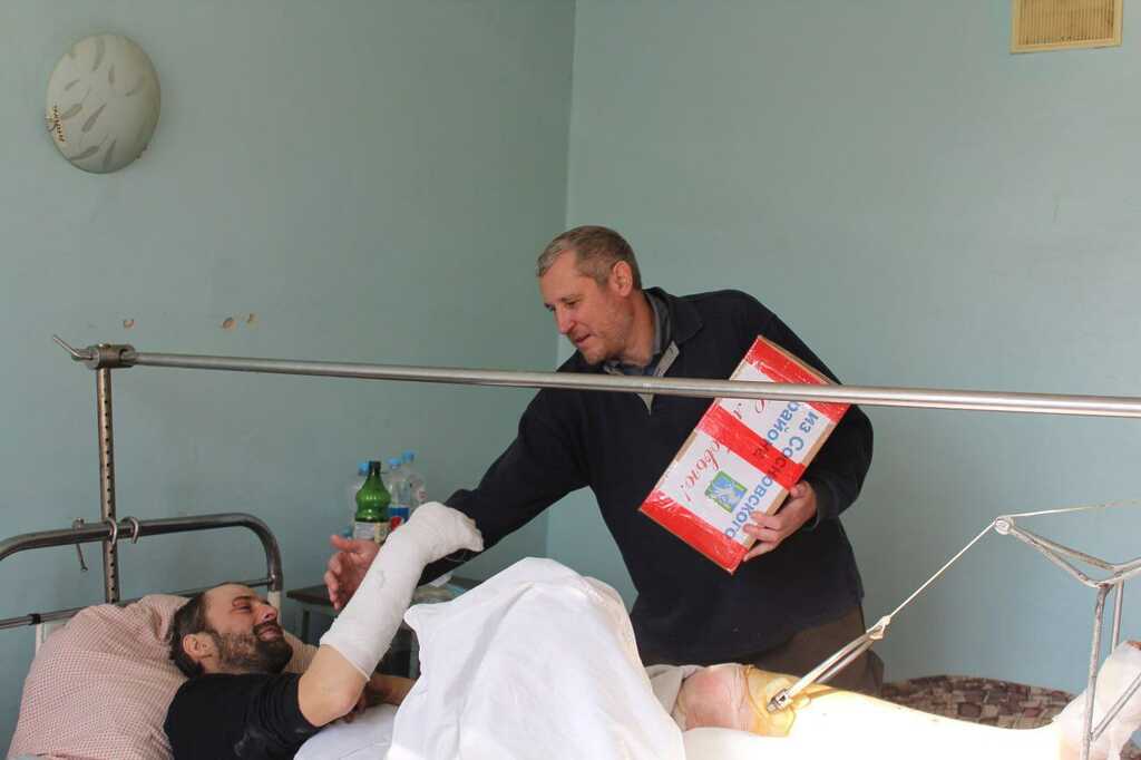 – Мы там переночевали, в пять утра поехали в Ясиноватую. Туда везли помощь второму тербату, ещё другим ребятам. Увезли помощь отцу Игорю в храм Святителя Николая в Ясиноватой. В госпиталь потом направили наши посылки, в ЖКХ, – вспоминает поездку Дмитрий. – После Ясиноватой позвонили ребятам из Кременной, встретились с ними в Северодонецке на блокпосту. Поехали к ним, два дня у них переночевали. Молебен отслужили практически на передовой.