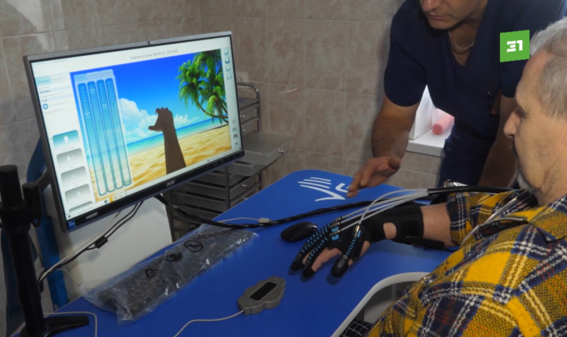 – Сейчас на экране будет показываться движение. Человек представляет, что это делает сам, а робот за него будет работать. Возвращает тактильные ощущения, то, что суставы работают, не застаиваются, – Павел Мурашов, врач-мануальный терапевт ОКБ №3.