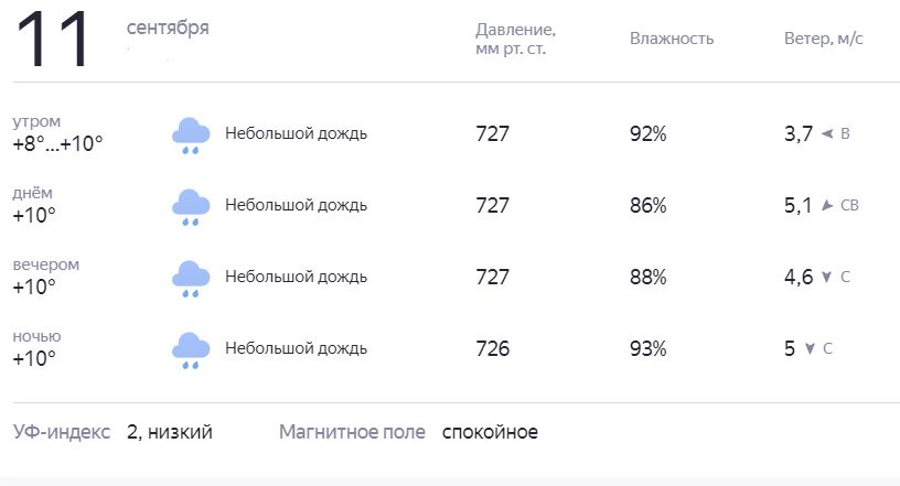 Погода на 11 сентября
