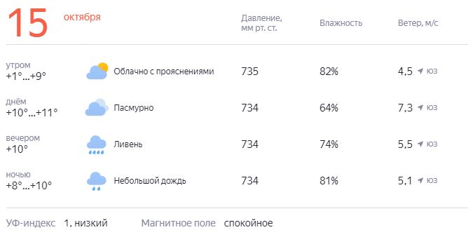 Завтра будет облачно, к вечеру возможен ливень.