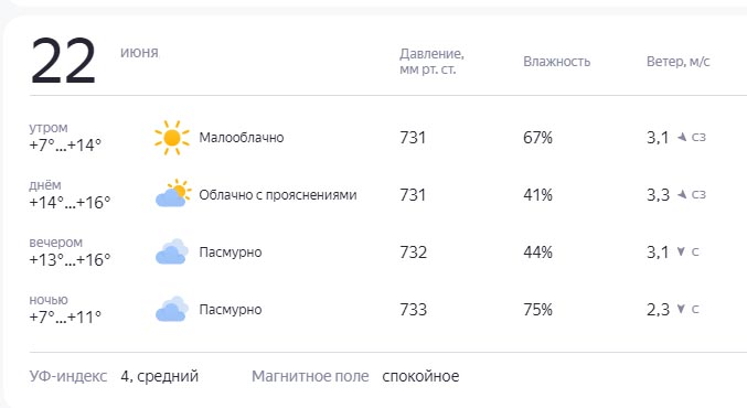 Солнце взошло в 04:32, а опустится за горизонт в 21:27. Световой день продлится 16 часов 55 минут.