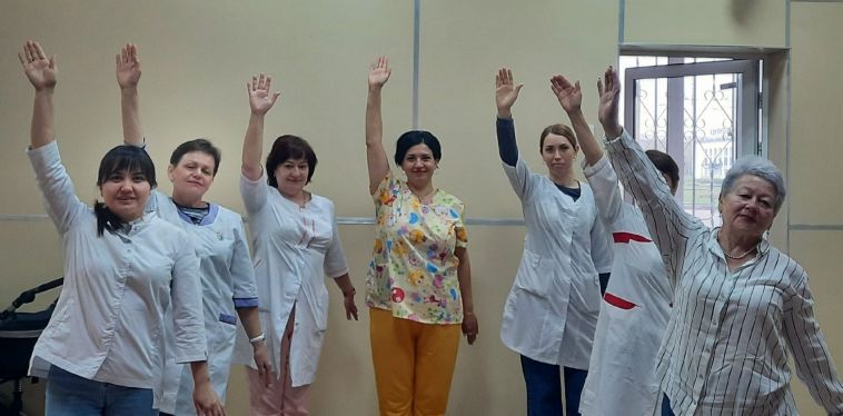 фото: ЦОМиД г. МагнитогорскНередко работа бывает связана со статичными положениями и ограниченной активностью. В таком случае поддержать свое здоровье в порядке и улучшить настроение поможет производственная гимнастика. Делать активные перерывы советуют врачи. Своих же рекомендаций придерживаются и сами медики. Так, по 10-15 минут из рабочего дня на зарядку выделяют сотрудники Областной психоневрологической больницы № 1: