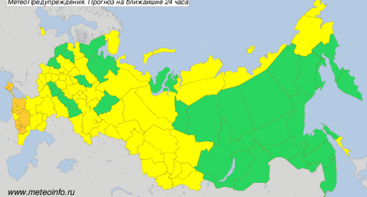 «Желтый – погода потенциально опасна», – говорится в сообщении.