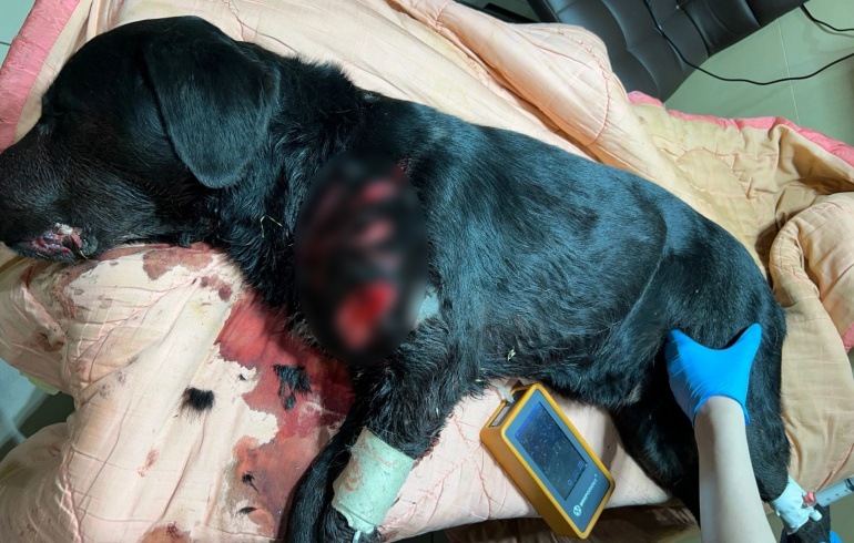 Как сообщает Telegram-канал Ural Mash, лабрадор с жуткими ранами сам приполз к соседям. Шокированные жители позвонили в полицию и рассказали о случившемся. Сотрудники ППС, прибывшие на место, присматривали за раненым животным пять часов и искали, где его могут спасти. Помочь четвероногому пообещали в одной из ветклиник Челябинска. Правоохранители совместно с зоозащитниками оперативно доставили собаку туда, сейчас ей необходимо переливание крови.
