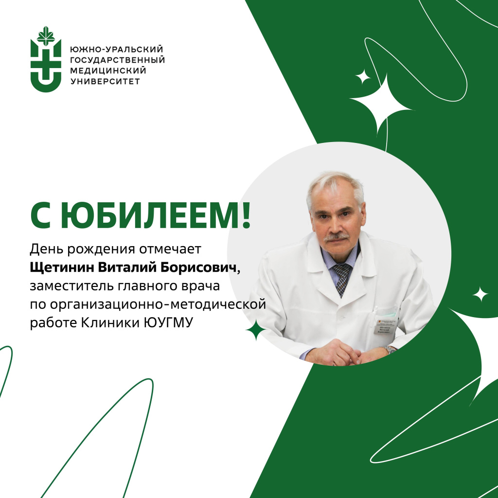 Юбилей отмечает заместитель главного врача по организационно-методической работе Клиники ЮУГМУ Виталий Борисович Щетинин