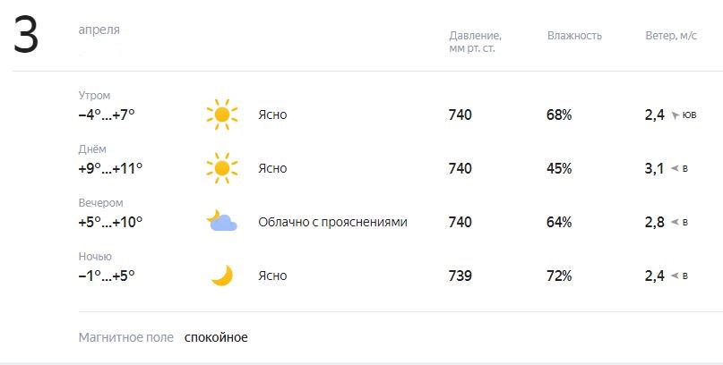 Днем температура воздуха поднимется до +11 градусов, ночью будет 0,-1. Магнитное поле спокойное.