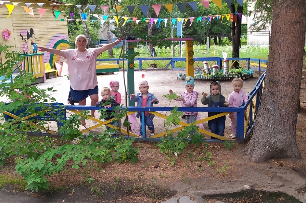 Музыка звучала так задорно, что даже малыши ясельной группы № 10 пришли посмотреть на праздник и поплясать вместе с большими ребятками. А малышкам из группы 4 особенно повезло: их участок очень удачно расположен (рядом и с центральной площадкой, и со спортивным участком), поэтому они всегда активно «участвуют» во всех праздниках детского сада!