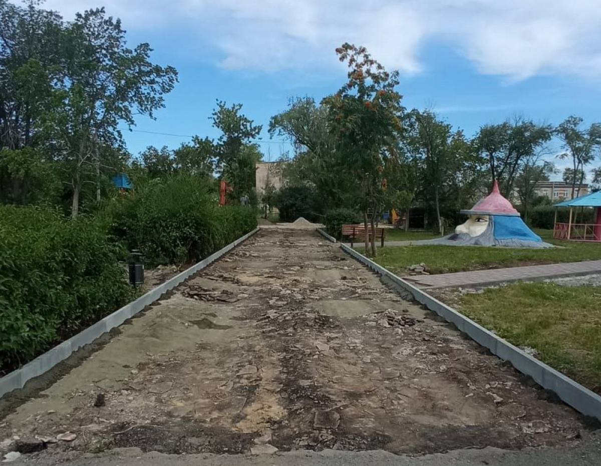 В Локомотивном городском округе продолжаются работы по благоустройству детского городка