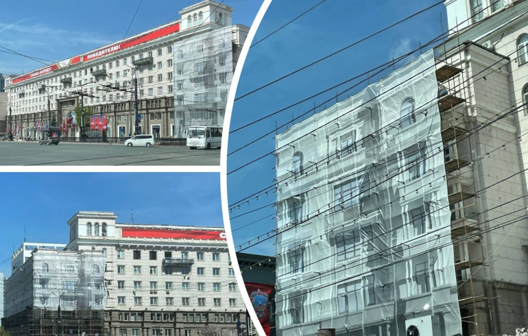На площади Революции в Челябинске начали реставрировать «Жилой дом облисполкома».