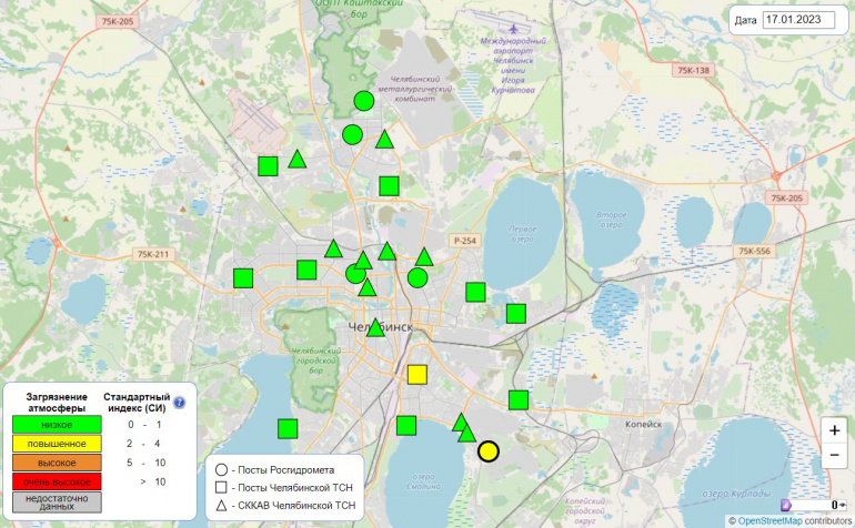 Повышенное загрязнение воздуха во вторник, 17 января, фиксировали посты в Ленинском районе Челябинска на улицах Южный Бульвар и Новороссийской