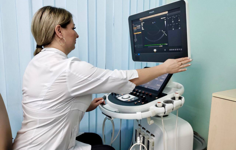 Кроме прочего, пациентов поликлиники теперь будут обследовать при помощи инновационной ультразвуковой системы экспертного класса Philips Affiniti 50. Оборудование обошлось бюджету в 7 миллионов рублей. Система позволяет точно визуализировать артерии и вены головного мозга и шеи, оценивать состояние периферического кровообращения и диагностировать новообразования. На этом аппарате также можно проверять состояние глаз, головного мозга и лёгких, диагностировать акушерско-гинекологическую патологию, более детально изучить щитовидную, вилочковую и молочную железы.